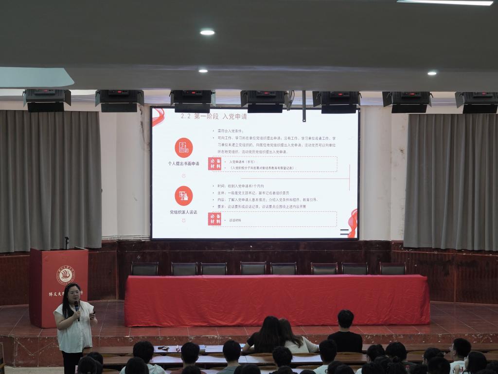 党课伊始,李林老师以“入党为什么?在党做什么?”的灵魂之问开篇,结合党的百年奋斗史与新时代使命担当展开论述。“从革命年代李大钊‘铁肩担道义’的呐喊,到当代‘90后’驻村书记黄文秀扎根大山的奉献,一代代共产党人的初心始终与人民紧密相连。” 她指出,新时代青年的入党初心,应是对马克思主义的坚定信仰,对中国特色社会主义道路的绝对忠诚,更是将个人理想融入民族复兴伟业的自觉担当。