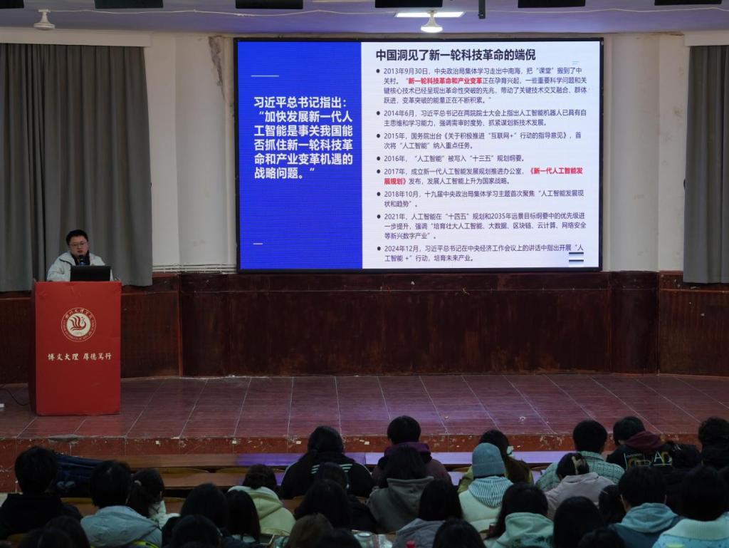 11 月 26 日,公司党委书记侯翔教授在南坝校区学术报告厅,以 “传承红色基因 弘扬塔石精神,在‘人工智能 +’时代砥砺奋进” 为题,为全院师生讲授思政课,引导师生紧跟智能时代步伐,夯实履职尽责基础。