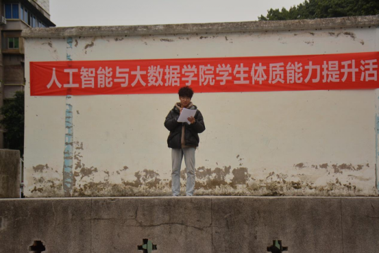 紧接着,专职辅导员谭力川老师上台致词,他首先代表公司向参与此次活动的全体师生表示热烈的欢迎。他讲到体质是同学们学习和生活的基础,强健的体魄有助于大脑更加活跃,思维更加敏捷,从而使同学们能够更好地掌握专业知识和技能。他还鼓励所有同学根据自身条件选择合适的活动项目并以良好的心态参与比赛,赛出风格与水平。同时,他再三强调:“同学们,平时不论是参加锻炼还是参与活动,一定要注意自身安全。”