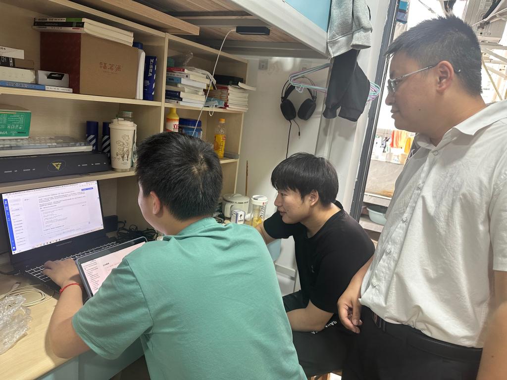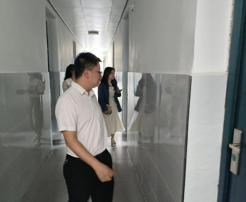 党委副书记侯翔亲自带队,与专职辅导员李林、胡雪莲、廖婷老师一同深入员工寝室,劳生部及新闻中心的部分干事也积极参与其中。在走访过程中,老师们认真细致地检查了寝室的消防设施、用电安全以及卫生状况,对部分寝室进行了现场点评和指导,确保寝室防火、用电设备均达到安全标准,并鼓励员工们保持寝室的整洁有序。