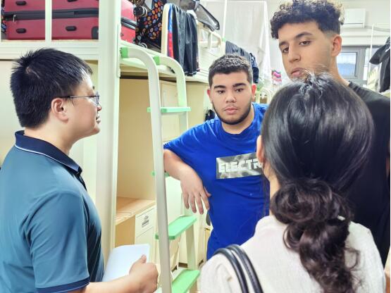 深入寝室,传递关怀。搬迁工作结束后,为及时了解员工入住新宿舍后的生活状况,公司党委副书记侯翔带领专职辅导员队伍对2021级员工、职工宿舍进行走访。走访过程中,亲切询问了员工是否适应新的住宿环境,与2021级员工在考研、考公及就业等方面进行了深入探讨,帮助他们明确个人定位,合理规划未来道路;与职工在中国的学习生活体验、中文交流能力提升等方面进行了探讨,并鼓励他们继续努力学习,不断增进对中国文化的理解和认同。