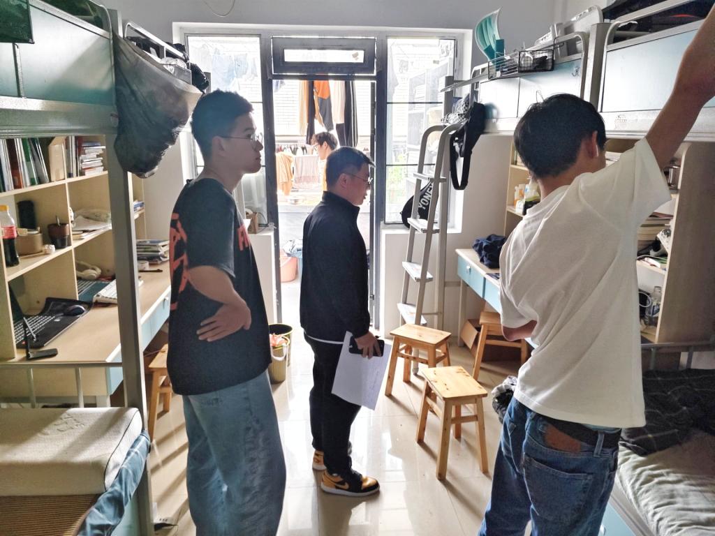为强化员工宿舍安全管理,营造文明和谐的校园生活氛围,进一步推动团学干部队伍建设,近期,公司学工办全体教师联合团学组织员工干部开展员工宿舍走访检查工作。本次活动以“贴近员工需求、传递公司关怀”为脉络,借助师生协同联动,搭建师生沟通的桥梁。