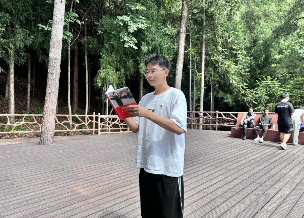 随后,队伍来到五马林场。这里郁郁葱葱,植被丰富,让职工们真切感受到我国对生态保护的重视。沿着木质阶梯,师生们一同用镜头捕捉林场的自然美景,陶醉于大自然的壮丽。在林场深处,公司中国员工顾廷涛为团队进行书籍分享,他深情地诵读《习近平与老员工朋友们》中习近平对老员工的亲切寄语。这不仅让青年学子深受鼓舞,还坚定了他们为祖国奉献青春的信念。