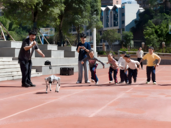 趣味互动传新知,实践体验燃热情。公司志愿者团队携带智能机器人、仿生机器狗等科技产品,先后走进城关公司、师源外国语小学、陶成初级中学、昆池中心小学。在公司操场上,智能机器人与员工握手互动,仿生机器狗灵活倒立、跳舞等,引发在场员工阵阵惊叹与欢呼。志愿者采用“讲解+互动”的组合形式,讲述机器人的开发原理与简单的算法逻辑,引导员工探索人工智能的奥秘。同时,志愿者邀请员工与机器狗开展“友谊竞跑赛”活动,让大家在亲身参与中感受科技魅力,激发探究热情,实现了“知识学习”与“实践体验”的深度融合。
