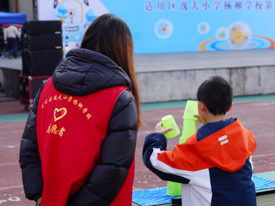 室内科技小制作区域洋溢着专注创作的氛围。在志愿者逐步指导下,同学们亲手完成科技主题手工作品。“看到孩子们专注动手、开心完成作品,我们觉得特别有意义,”志愿者负责人邓军航表示。从模型拼装到创意制作,同学们在实践中体验创造乐趣,也直观理解了基础机械与结构原理。