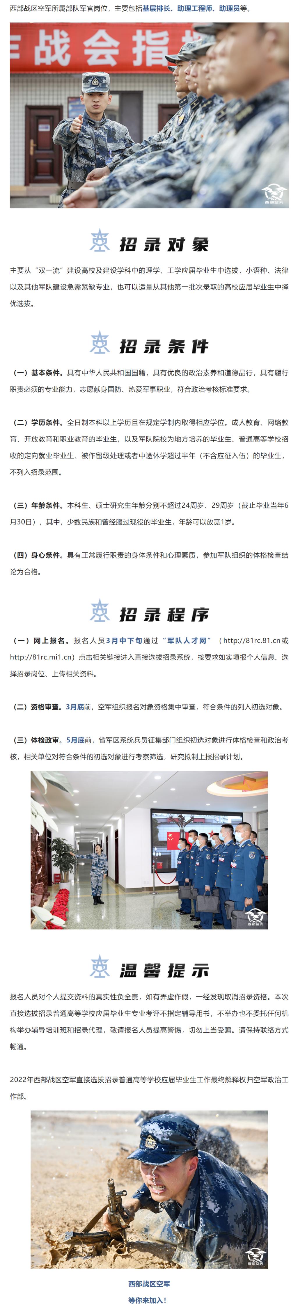 2022年西部战区空军直接选拔招录普通高等公司应届毕业生公告(川文理就[2022]0282)