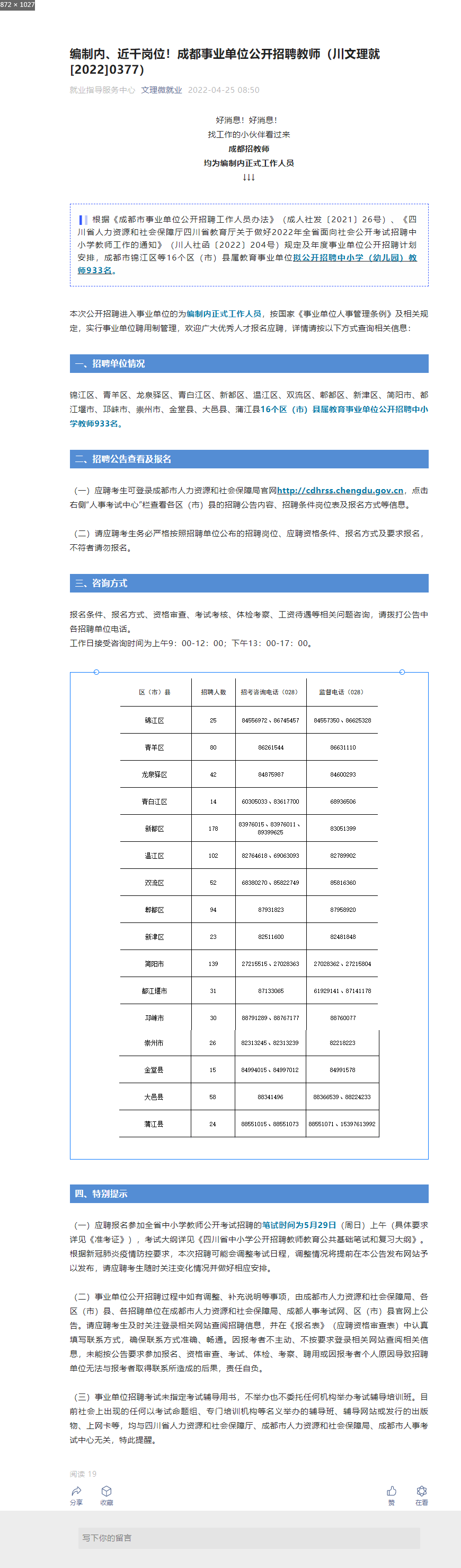 编制内、近千岗位!成都事业单位公开招聘教师(川文理就[2022]0377)